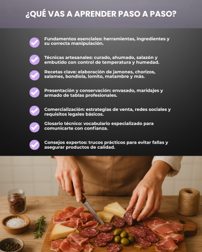 Desde la selección de ingredientes y técnicas de conservación, hasta recetas, presentaciones y consejos para montar tablas de charcutería gourmet.